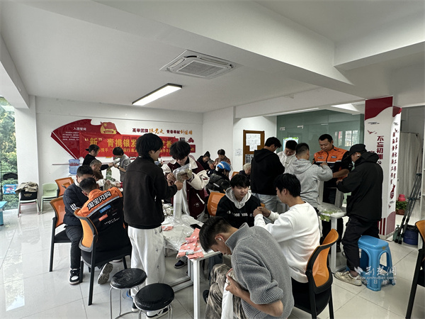 現(xiàn)場采用“1+1”結(jié)對模式,即1名新就業(yè)群體成員與1名老年人協(xié)作。年輕人負責(zé)填充艾草,老年人則憑豐富的生活經(jīng)驗,指導(dǎo)填充節(jié)奏和套枕套的技巧,兩代人配合默契?!捌綍r送餐趕時間,很少和社區(qū)老人聊上幾句,今天才發(fā)現(xiàn)他們懂這么多生活技巧,太厲害!” 一位外賣騎手一邊小心將艾草填入枕套,一邊笑著感慨,身旁的老人則熟練幫他封口打結(jié)。