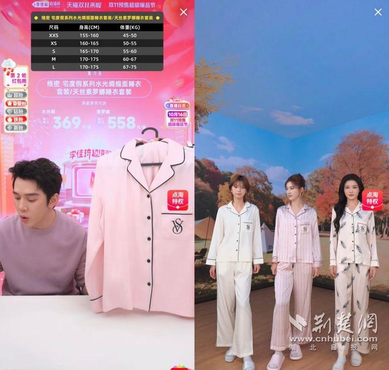 內(nèi)衣與家居服成為今年大促李佳琦直播間增長最快的細分服飾品類,以維秘為例,首輪上架的6款單品中有3款迅速售罄,品牌整體銷售增長超過200%,其中天絲棉柔睡衣與輕舒絨睡衣成為大促“現(xiàn)象級爆款”。
