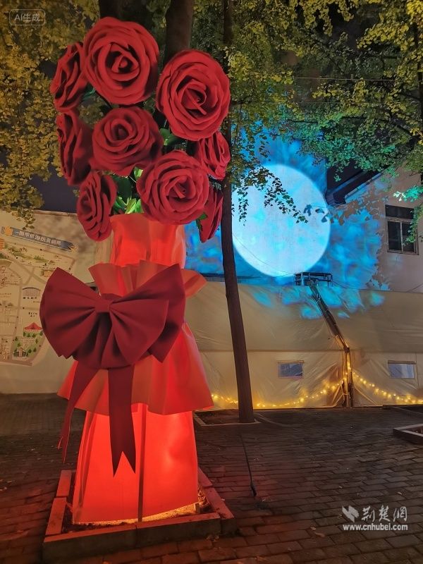 荊楚網(wǎng)(湖北日?qǐng)?bào)網(wǎng))訊(通訊員 陳曉燕 周佳穎)11月5日,武昌區(qū)黃鶴樓街道后宰門街角一道獨(dú)特的風(fēng)景引人注目,一棵“永不凋零”的“愛(ài)之樹(shù)”絢麗綻放,樹(shù)上盛開(kāi)的巨型玫瑰花與一旁的月球投影裝置相映成趣,與遠(yuǎn)方的黃鶴樓共同構(gòu)成一幅詩(shī)意城市景觀。