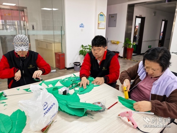 在為期兩周的創(chuàng)作中,陽(yáng)光家園學(xué)員在志愿者的陪伴下,從設(shè)計(jì)畫圖、精準(zhǔn)剪裁到立體塑形、精細(xì)組裝,系統(tǒng)學(xué)習(xí)并逐步掌握了銀杏葉與玫瑰花的制作技巧?!暗谝淮螀⑴c制作這么大的藝術(shù)作品,沒(méi)想到我也能創(chuàng)造出這么美的作品!”一位學(xué)員自豪地展示成果。創(chuàng)作過(guò)程中,殘健伙伴分工協(xié)作、各展所長(zhǎng),在默契配合中締結(jié)了深厚情誼。