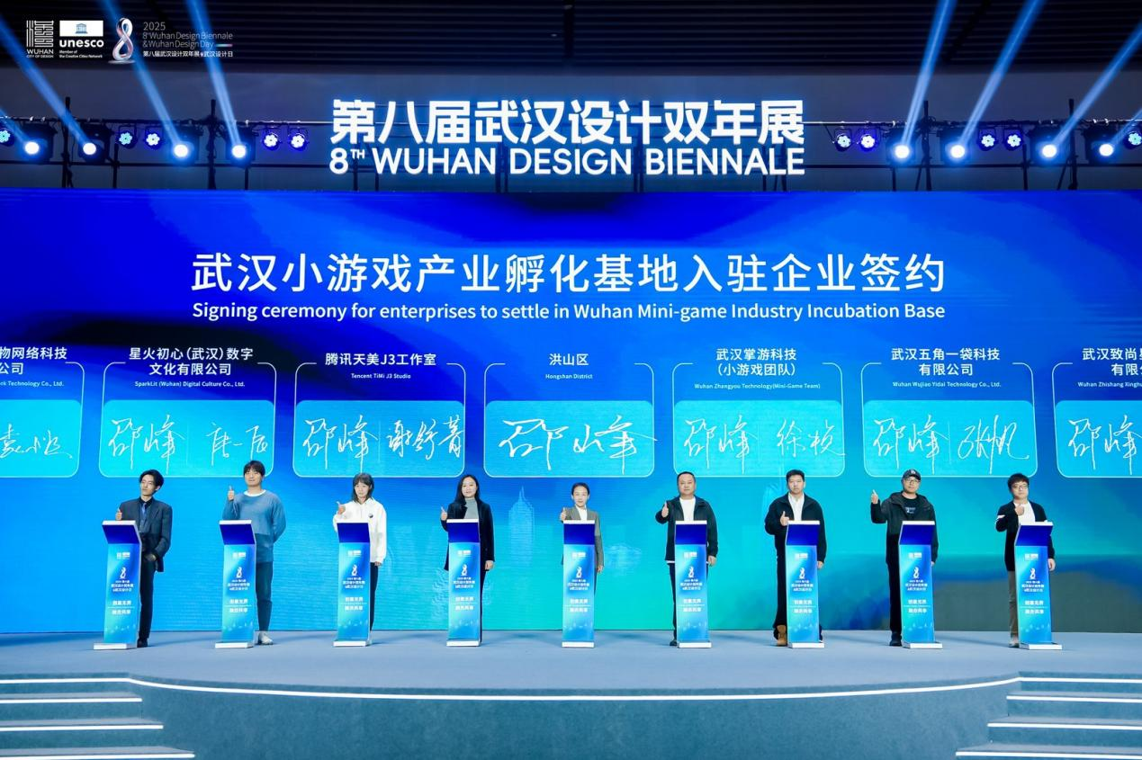 榮譽之外,產(chǎn)業(yè)合作是設計價值轉(zhuǎn)化的關鍵。開幕式現(xiàn)場,8家企業(yè)簽約入駐全國首家小游戲產(chǎn)業(yè)孵化基地——“武漢市小游戲產(chǎn)業(yè)孵化基地”,他們中既有充滿朝氣的新生代小游戲團隊,也有掌游科技這樣的行業(yè)領軍者,更有騰訊天美J3工作室等頂尖力量,他們將攜手打破行業(yè)邊界、共享資源平臺,共同推動數(shù)字創(chuàng)意產(chǎn)業(yè)與設計融合發(fā)展。