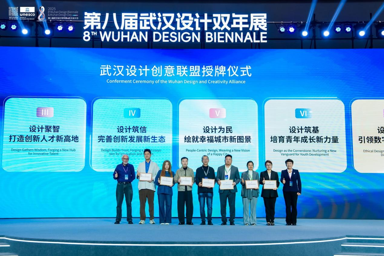武漢有設計相關專業(yè)高校50余所,設計專業(yè)在校學生近10萬人,設計相關企業(yè)突破1萬家,10余個設計行業(yè)協(xié)會,從業(yè)人員超50萬,形成了強大的“設計創(chuàng)意聯(lián)盟”,催生出了集產(chǎn)業(yè)鏈、創(chuàng)新鏈、人才鏈、價值鏈于一體的融合創(chuàng)新發(fā)展生態(tài)體系。在開幕式的最后,“武漢設計創(chuàng)意聯(lián)盟”正式授牌,來自設計企業(yè)、行業(yè)協(xié)會、高校院所和獨立設計師等領域多元設計力量代表共同見證。未來,“武漢設計創(chuàng)意聯(lián)盟”將奮力實現(xiàn)設計融城,構筑協(xié)同發(fā)展新范式;設計賦能,激活產(chǎn)業(yè)升級新動能;設計聚智,打造創(chuàng)新人才新高地;設計筑信,完善創(chuàng)新發(fā)展新生態(tài);設計為民,繪就幸福城市新圖景;設計筑基,培育青年成長新力量;設計向善,引領數(shù)字文明新航向;設計聯(lián)通,拓展國際交往新空間八大目標。