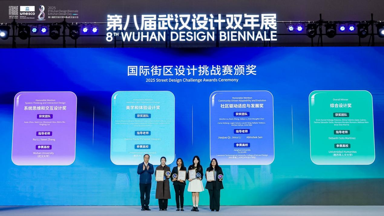 開幕式上,2025年武漢國際創(chuàng)意設計大賽(金黃鶴獎)與 2025年國際街區(qū)挑戰(zhàn)賽頒獎儀式同步舉行。其中,象征武漢設計創(chuàng)新探索的“金黃鶴獎”,今年特意選取黃鶴樓、山海關路、漢陽門等市民常去、關注度高、滿滿煙火氣的城市地標作為設計對象,不限專業(yè)和地域,征集更宜人的更新提升方案。現(xiàn)場,武漢瑞拓建筑設計咨詢有限公司等6個專業(yè)組一等獎和最佳組織獎武漢市七一華源中學等獲獎代表接受頒獎。國際街區(qū)挑戰(zhàn)賽,則是由聯(lián)合國教科文組織設計之都城市聯(lián)合舉辦,全球高校團隊共同參與的國際設計賽事。經(jīng)過全球30位權威專家1個月的精心細致評審,選出了四個優(yōu)勝方案?,F(xiàn)場,為交互設計獎獲獎團隊武漢大學、美學設計獎獲獎團隊墨西哥人文大學、社區(qū)發(fā)展獎獲獎團隊江漢大學團隊和美國勞倫斯理工大學團隊,以及綜合設計獎獲獎團隊墨西哥人文大學頒獎。