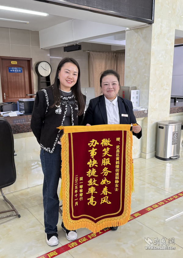 荊楚網(wǎng)(湖北日?qǐng)?bào)網(wǎng))訊(通訊員劉麗)近日,武昌區(qū)黃鶴樓街道便民服務(wù)中心工商窗口上演了暖心一幕。一位商戶代表將一面書寫著“微笑服務(wù)如春風(fēng),辦事快捷效率高”的錦旗,鄭重送到工作人員郭靜手中,對(duì)她即使在生病住院期間仍堅(jiān)持線上為商戶排憂解難的敬業(yè)精神表達(dá)誠(chéng)摯謝意。