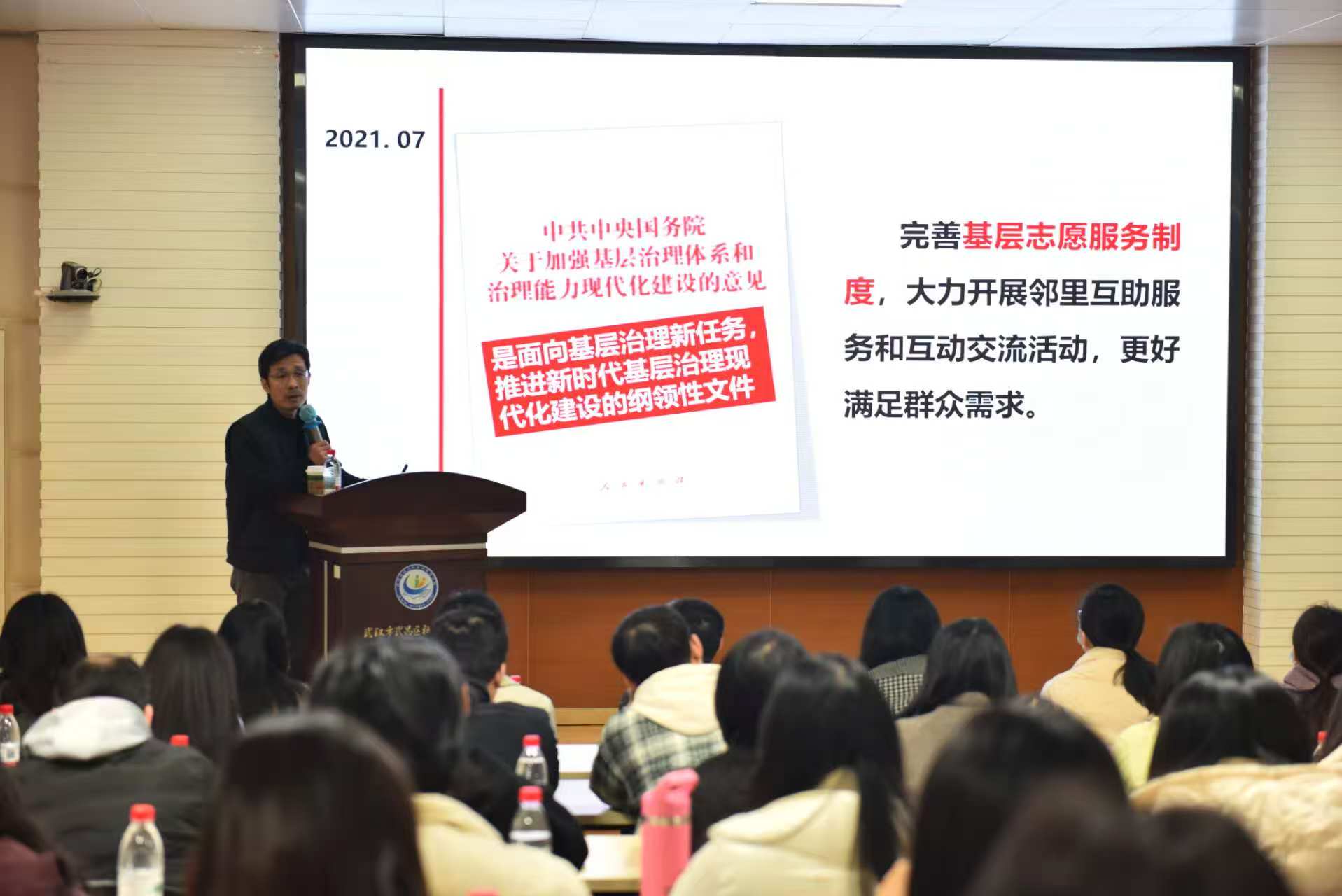 理論授課環(huán)節(jié),深圳大學(xué)政府管理學(xué)院袁方成教授以《志愿服務(wù)助力基層治理現(xiàn)代化》為題展開授課。他系統(tǒng)闡釋了新時代志愿服務(wù)體系的目標任務(wù)與發(fā)展趨勢,深入解讀了志愿服務(wù)工作發(fā)展歷程、職能要求、創(chuàng)新案例,為學(xué)員們打開了最新的宏觀視角,提供了堅實的理論支撐。