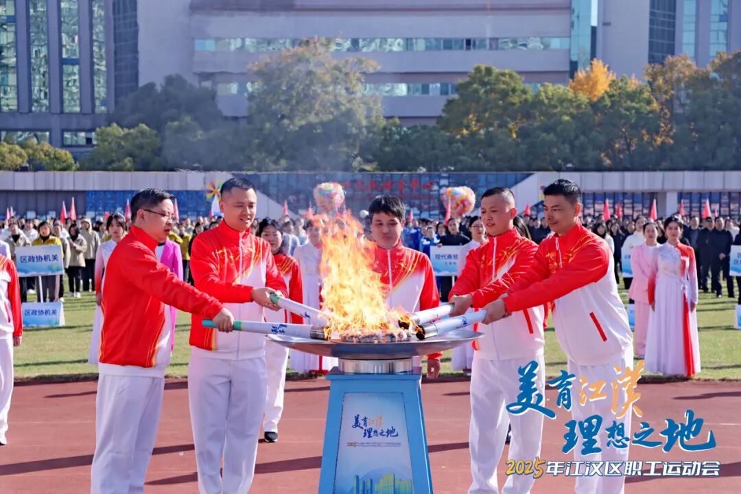現(xiàn)場,“新興之火”“數(shù)智之火”“金融之火”“樞紐之火”“人文之火”五棒火炬依次點(diǎn)亮,張?jiān)?、付俊、邵青、張寶劍、孟廣松等15位勞模代表接力傳遞。燃燒的火焰,照耀著江漢區(qū)在科技創(chuàng)新、數(shù)字化轉(zhuǎn)型、金融強(qiáng)區(qū)、商貿(mào)物流、文商體旅融合等發(fā)展領(lǐng)域堅(jiān)定向前。當(dāng)所有火炬手共同點(diǎn)燃主圣火盆,彩球騰空,全場沸騰,運(yùn)動(dòng)會(huì)正式開幕。