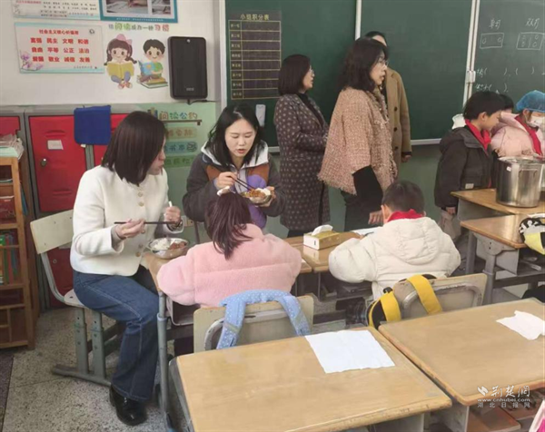 “兩代表一委員”陪同學(xué)生一同進餐。 通訊員供圖