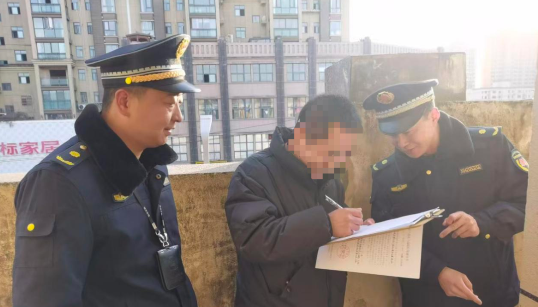 執(zhí)法人員現(xiàn)場(chǎng)拆除違規(guī)占用樓頂公共區(qū)域搭建陽光房