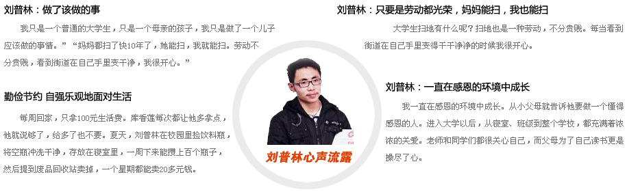 劉普林的可貴不僅在于為母分憂,而是一起掃街的身影讓人動容,母慈子孝承載著無數(shù)中國人企盼家庭和樂的人生理想。
