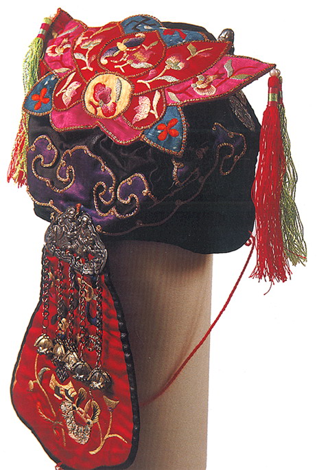 銀飾以白銀為原料,純度高,久用耐磨,不易腐蝕,光澤奪目,極顯高貴;一般為富裕人家的飾物,常有耳墜、戒指、手鐲、發(fā)簪、手鏈等。最為精彩的是帽飾人物,常用高浮雕、淺浮雕、鑲嵌和鏤空的表現(xiàn)手法,圖案多為龍鳳吉祥、長命富貴、麒麟送子等。